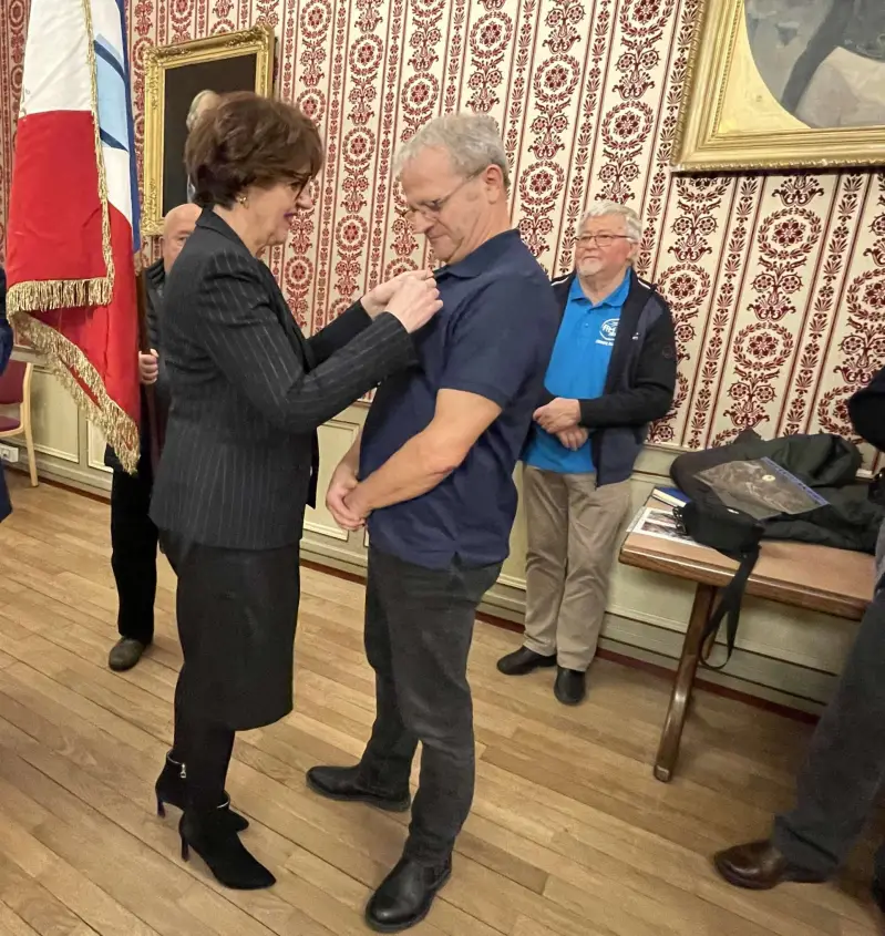 Famille, amis et représentants associatifs. Il y avait foule, ce mercredi 5 novembre, au théâtre Bernard Blier, pour assister à la nomination au grade de chevalier de l’ordre national du mérite de Roger Borey. Le président du comité départemental des médaillés de la jeunesse, des sports et de l’engagement associatif s’est vu remettre cette distinction prestigieuse des mains de Pierre Guedin , président de l’Association nationale des membres de l’Ordre National du Mérite (ANMONM). « C’est un honneur et un plaisir de nous réunir aujourd’hui pour rendre hommage à un homme dont le parcours incarne à la fois l’engagement, la passion de la transmission des valeurs et l’amour du dépassement de soi, particulièrement à travers les activités sportives, mais également dans le métier d’enseignant », a déclaré ce dernier en préambule.